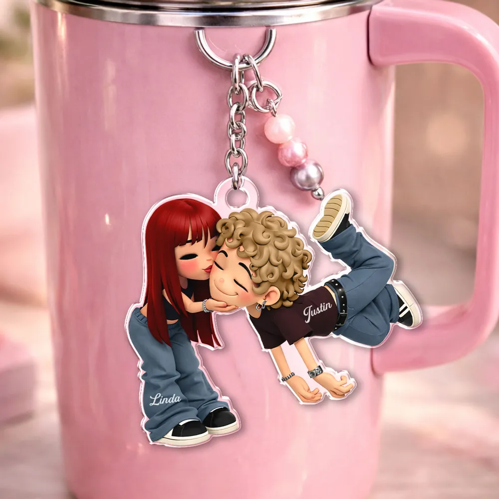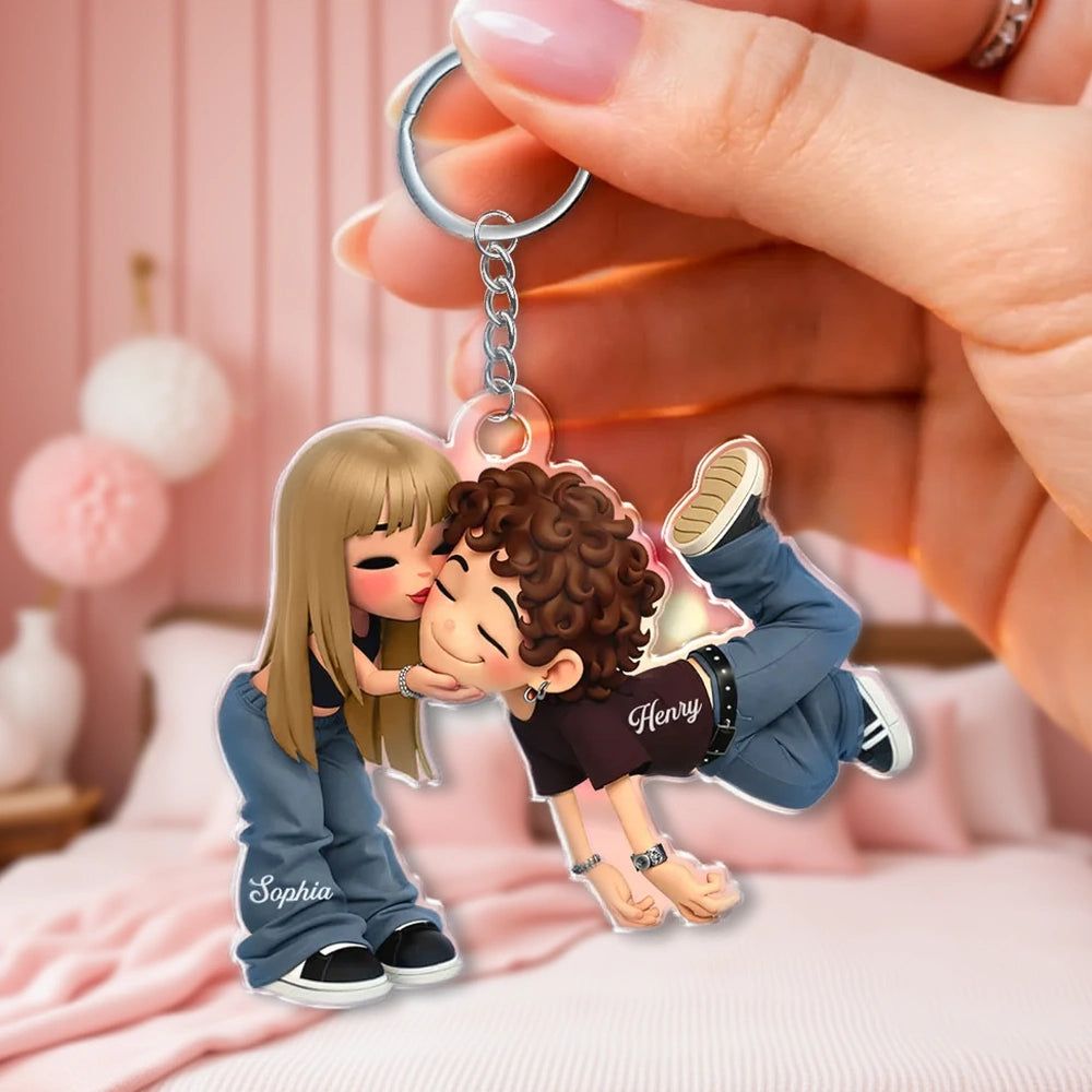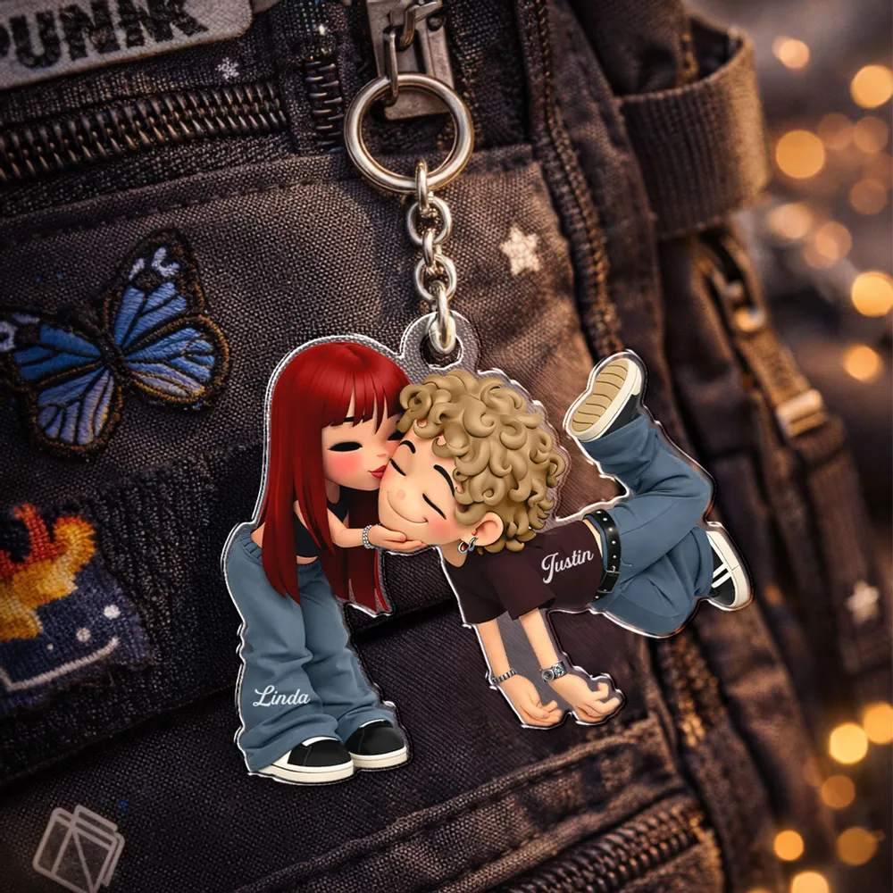 Custom-Personalized Romantic Cartoon Couple Acrylic Keychain -DIYTREE