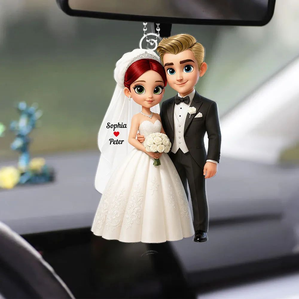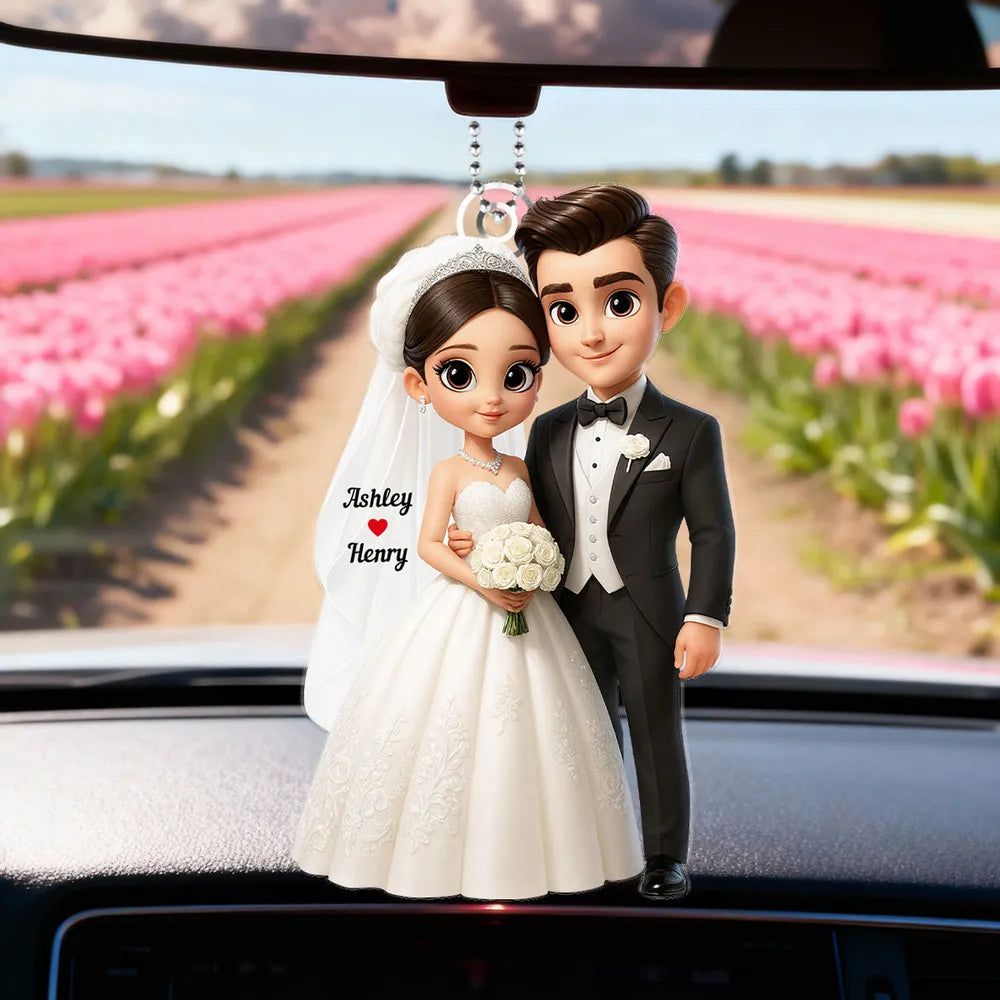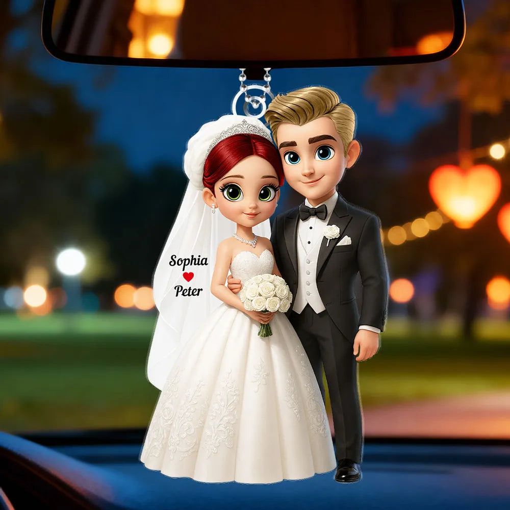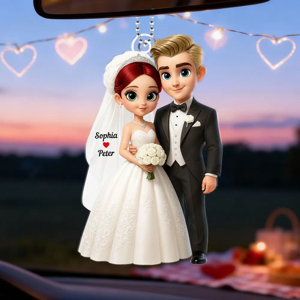 Custom-Wedding Couple Acrylic Car Hanger Romantic Rearview Mirror Charm-DIYTREE