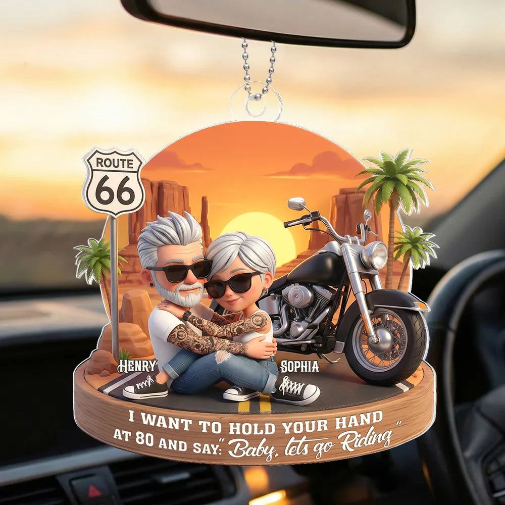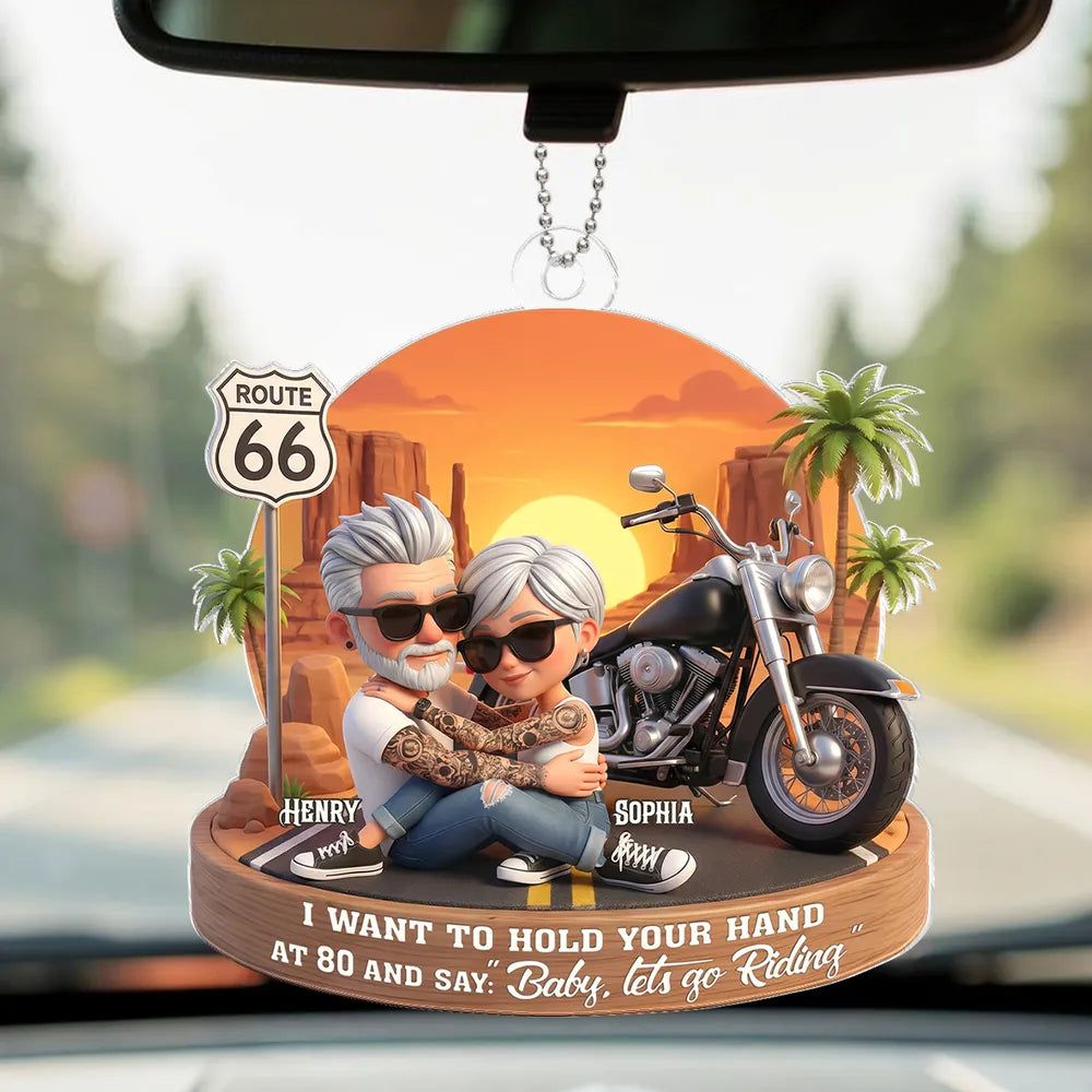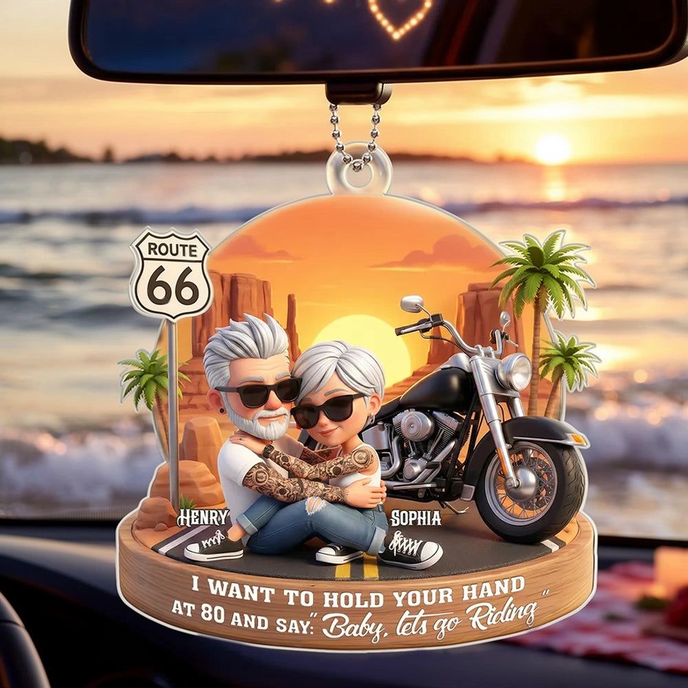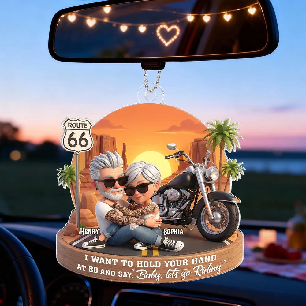 Custom-Acrylic Car Hanger Personalized Romantic Road Trip Scene Baby Let's Go Riding Quote -DIYTREE