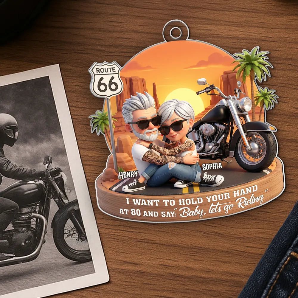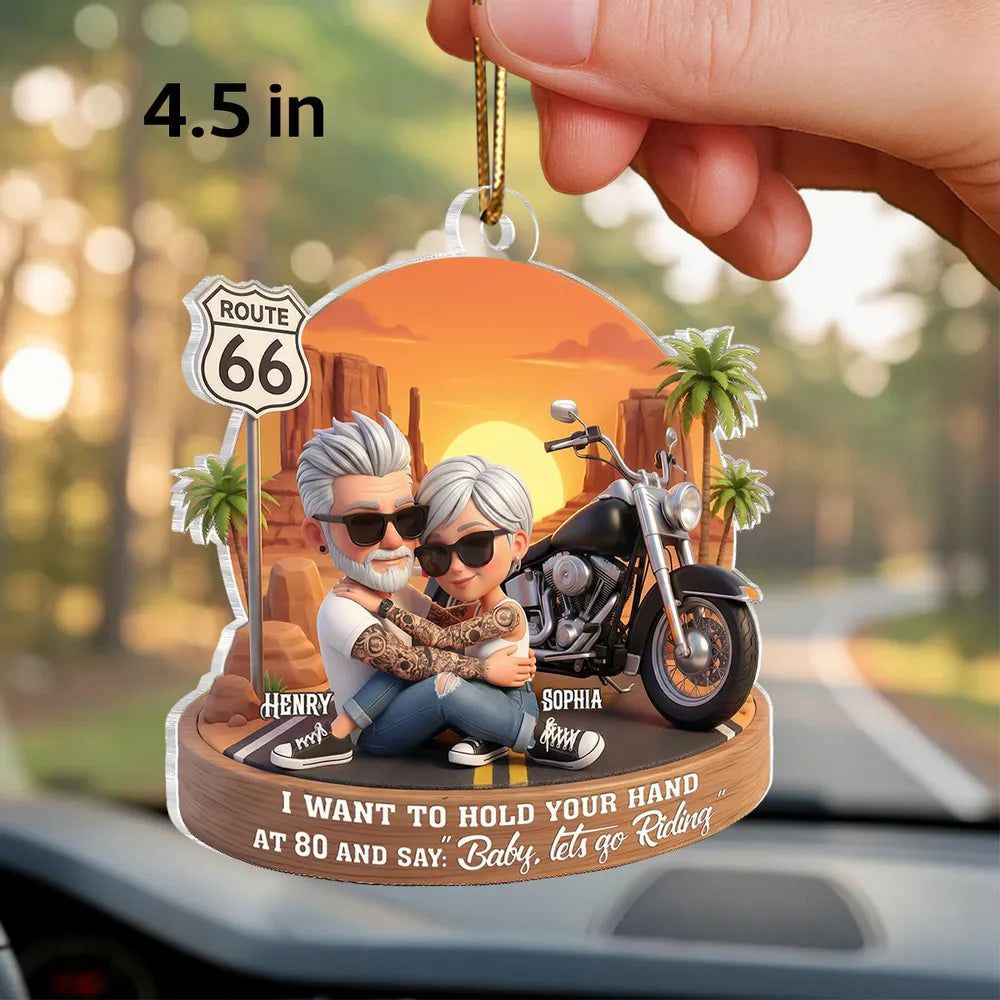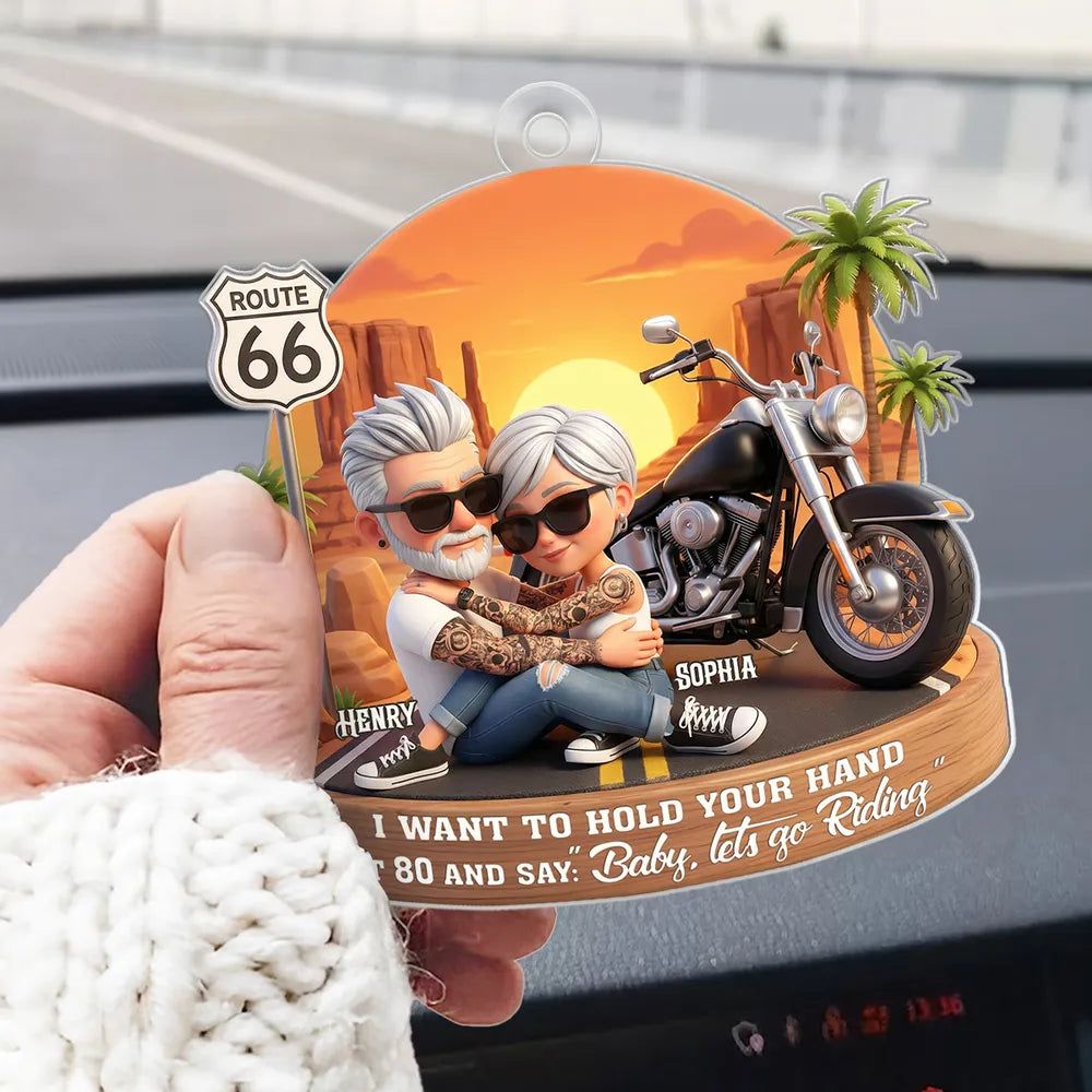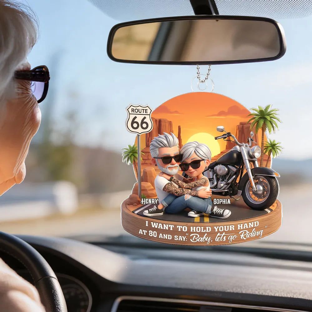 Custom-Acrylic Car Hanger Personalized Romantic Road Trip Scene Baby Let's Go Riding Quote -DIYTREE