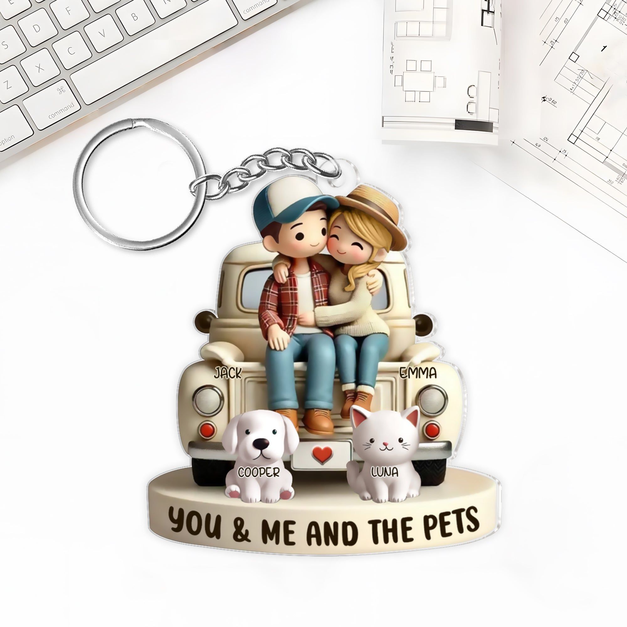 Custom-Couple and Pet Cartoon Acrylic Keychain – DIYTREE