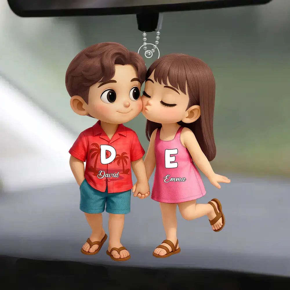 Custom-Cute Couple Holding Hands Acrylic Car Hanger-DIYTREE